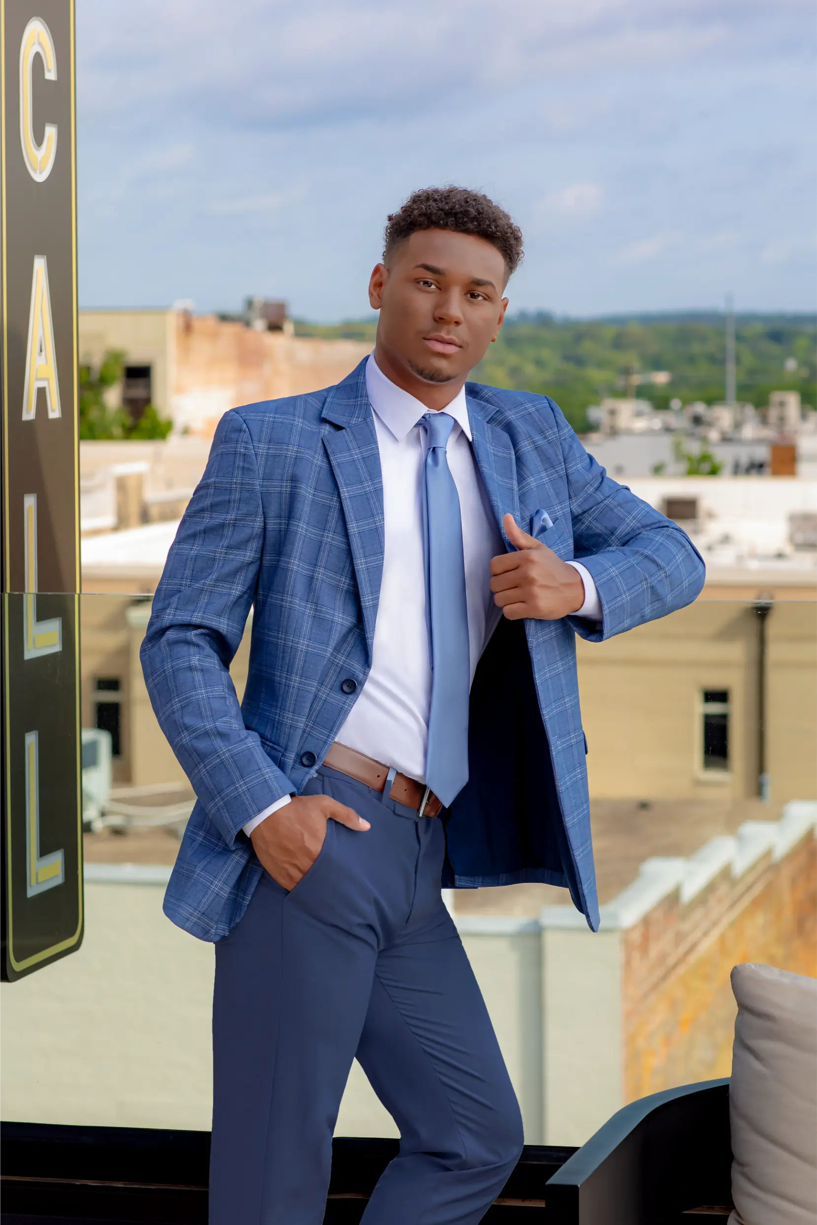 Sharp, modern, and effortlessly refined. The Indigo Metro Plaid Coat blends a rich indigo tone with a sleek plaid pattern for a standout look that’s perfect for weddings, special events, or elevated nights out.